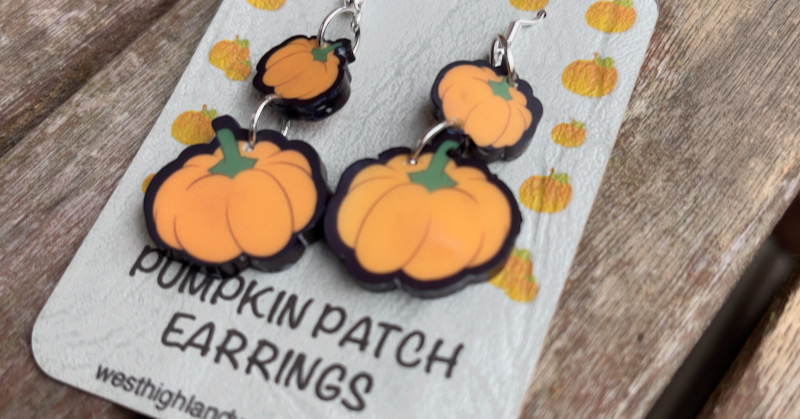 Pumpkin dangler earrings. Approx 5cm drop, Acrylic with hypo-allergenic hooks,
